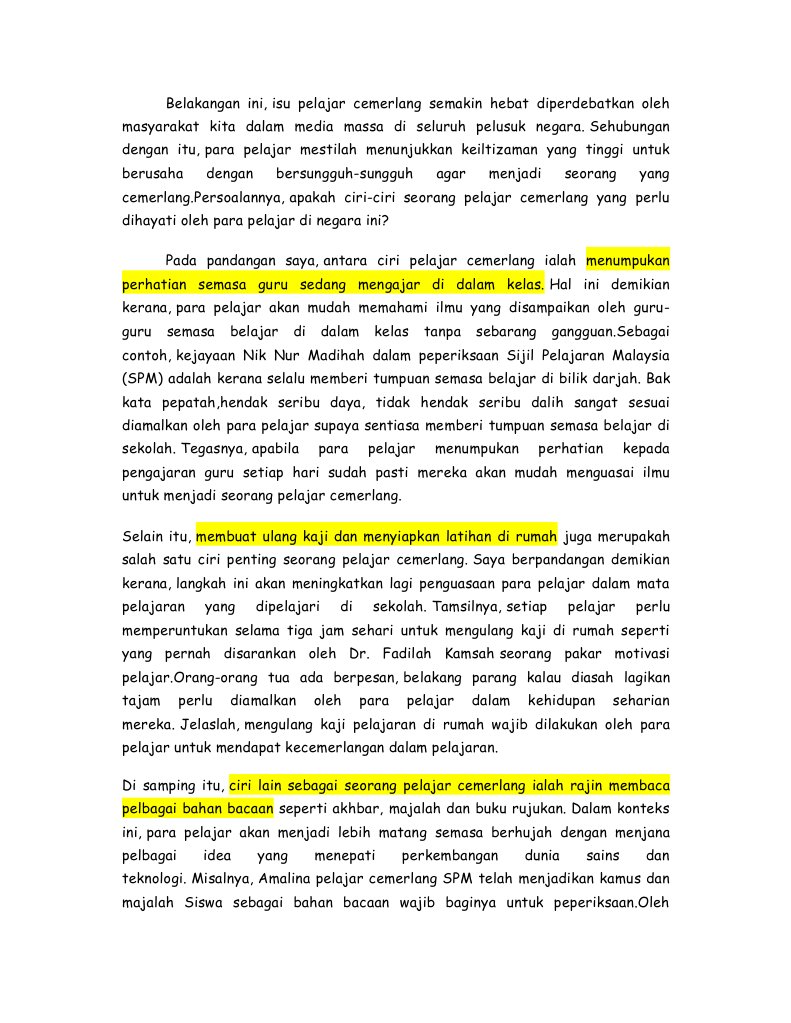 Contoh Karangan Karangan Ciri Ciri Pelajar Cemerlang Bila Rasa